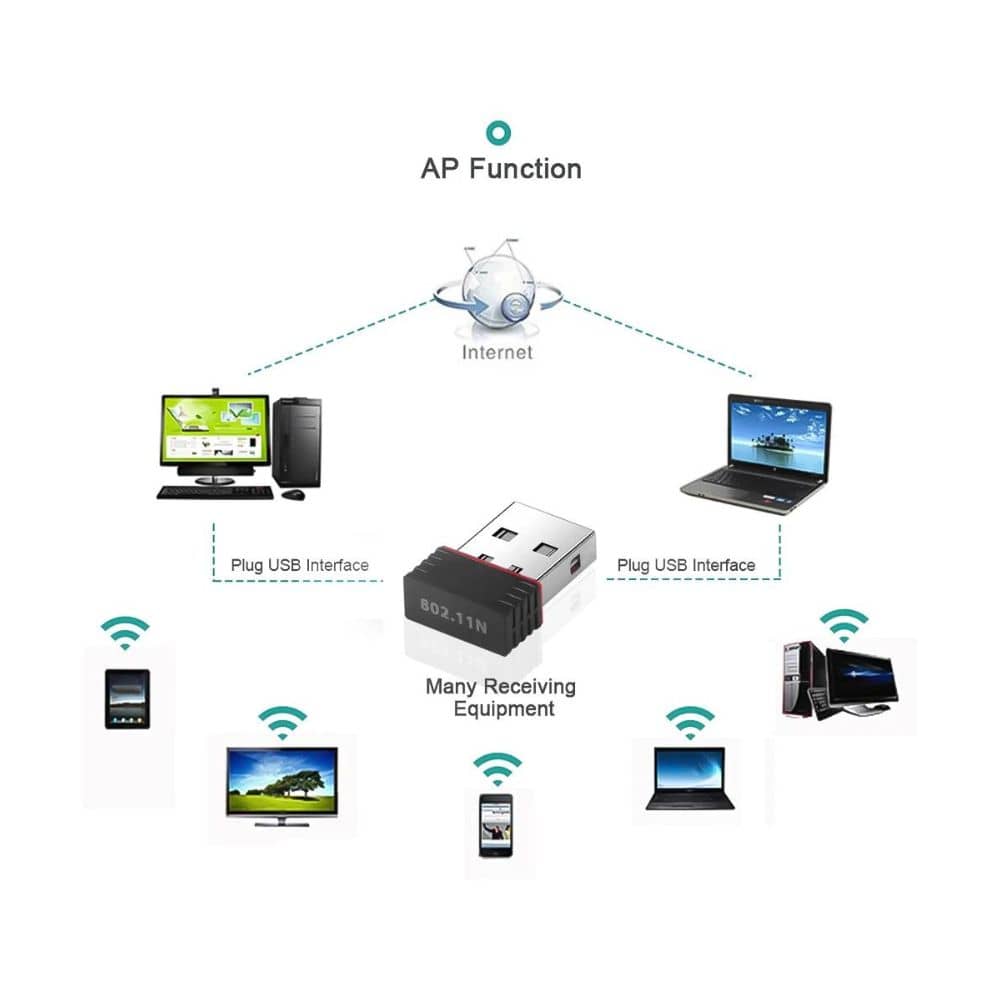 Mini adaptador Wifi inalámbrico USB de 150Mbps